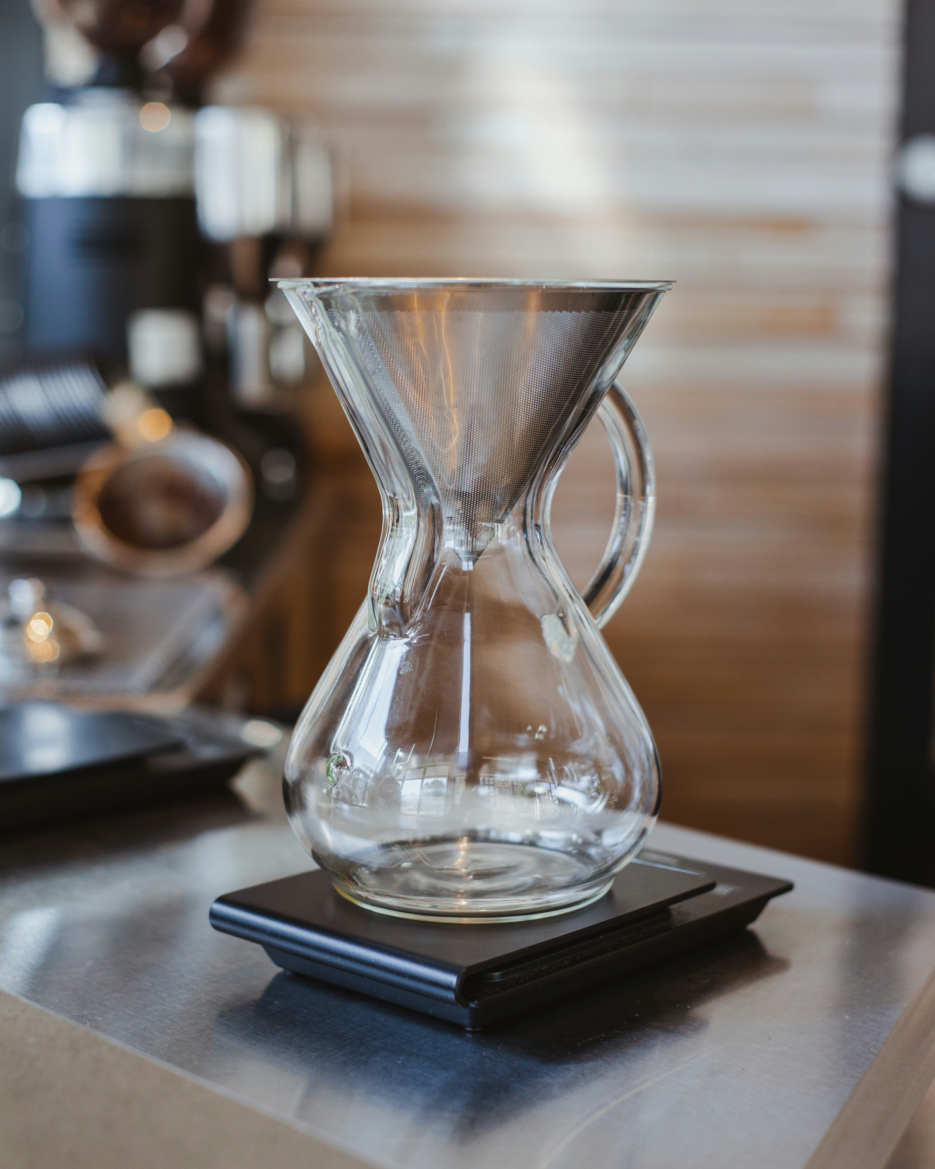 A classic brewed coffee prepared by slowly pouring hot water over ground beans, resulting in a clean and smooth cup.